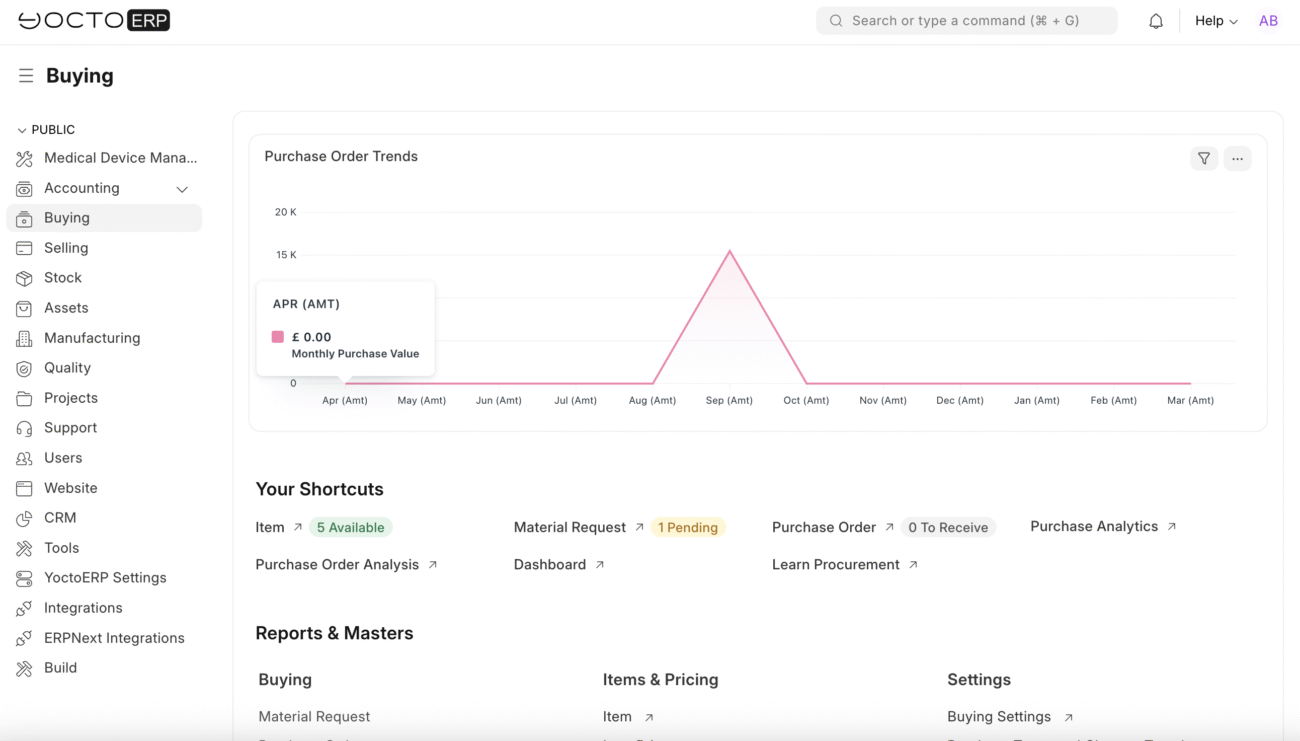 Procurement is the first step in the supply chain, and mistakes here ripple through your operations. YoctoERP handles it efficiently: